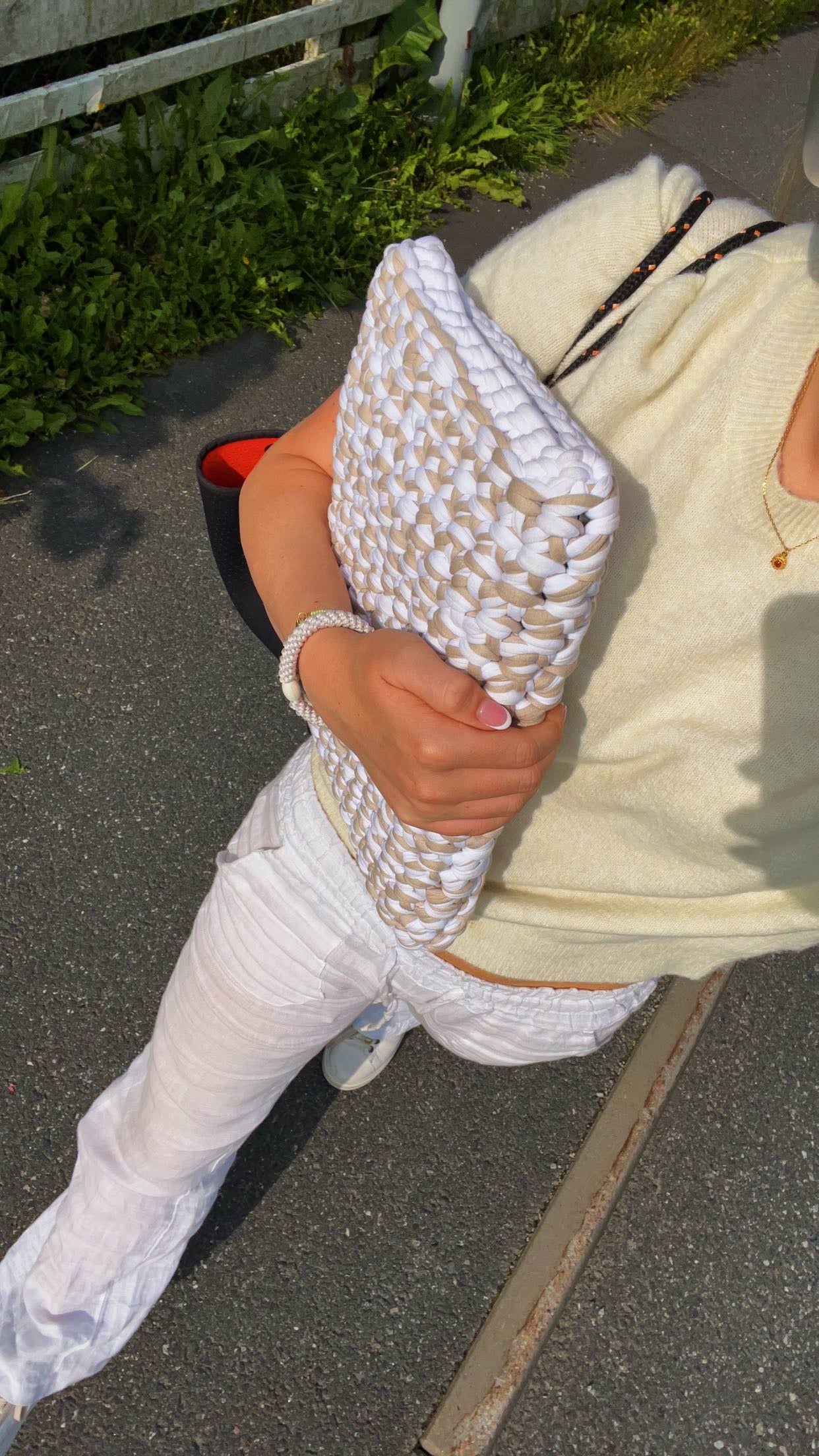 The CELINA cover– is the bestseller! made from recylcled tshirt yarn made in Portugal. It cover up so well and look fabiouls.